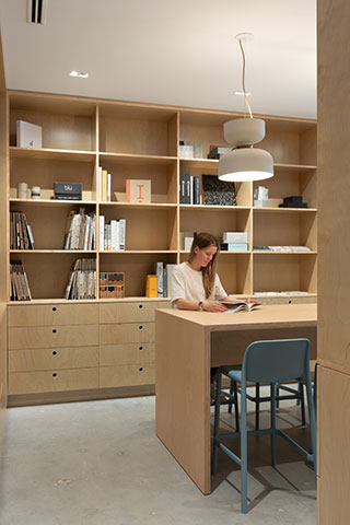 The material library forms the heart of space. Designers can pair flooring, tiles, and hardware and envision how each piece might enhance a project. This curated archive of finishes, textiles, and sample boards is not only an essential resource, but also a spot that provides endless inspiration for staff members.