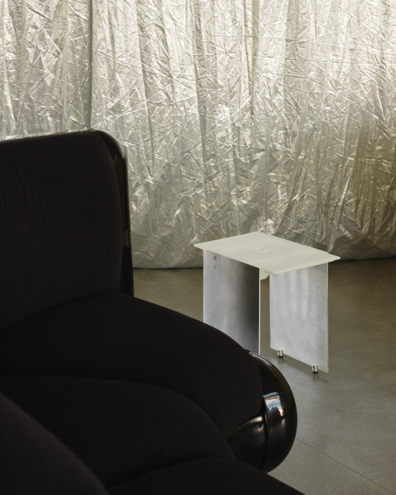 Alongside the new hues, Uma unveiled the Phantom Side Table, a collaboration with multidisciplinary designer Burak Koçak, founder of the jewelry and homeware label Epicene. Crafted from semi-transparent epoxy resin and supported by CNC-cut aluminum legs, Phantom borrows from aerospace and automotive industries a technique called typology optimization, eliminating unnecessary mass while preserving strength. “Rooted in the logic of nature, forms developed for efficiency often strike beauty,” Koçak shares. “This pursuit of balance – where nothing is wasted yet nothing is missing – results in objects that feel both inevitable and intentional.” Available in soft, atmospheric finishes like Clear Mist, Amber Haze, and Pink Sky, Phantom plays with light and presence, accentuating what’s been removed as much as what remains.