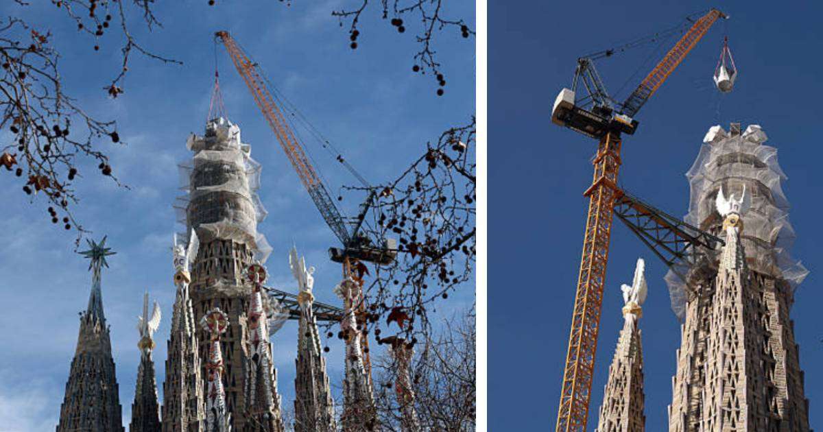 Source: ‘A joyful day’: final piece of Sagrada Familia’s central tower put in place, Barcelona’s Sagrada Familia reaches its maximum height after more than a century