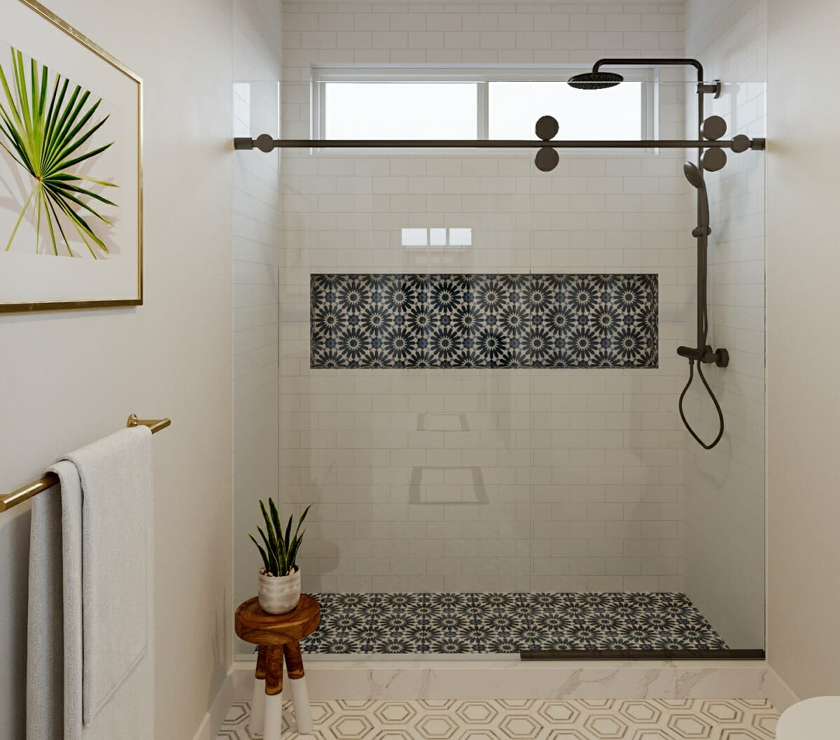 Thousands of creative and colorful tileworks open a world of striking bathroom design. So, be bold with various patterns. Think of a hexagon tile for the floor, a floral motif as an accent, and a grounding metro tile to make it all work together. Alternatively, include boho home decor in bursts. A small feature wall is enough to make an impact.